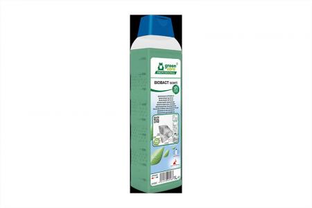 Eco-conçu à l’instar de tous les produits de la gamme Green Care Professional de Werner & Mertz, Biobact Scent contrôle efficacement les odeurs – même fortes - et apporte une propreté durable, le tout sans danger pour l’utilisateur et l’environnement. Il est composé de micro-organismes 100 % naturels qui décomposent les substances organiques telles l’urine et les résidus d’aliments (à la base d’odeurs nauséabondes), de plus il parfume agréablement la pièce ou le local. La présence durable de micro-organismes empêche, grâce à un usage régulier, une nouvelle accumulation de saletés organiques. Biobact Scent peut être utilisé en autolaveuse. Il convient aux surfaces résistantes à l’eau (zones autour des toilettes publiques, urinoirs, baignoires, canalisations…) également aux textile et meubles. Son flacon (1 litre) est conçu dans un plastique recyclé à 100 % émanant de la post-consommation (sac jaune).